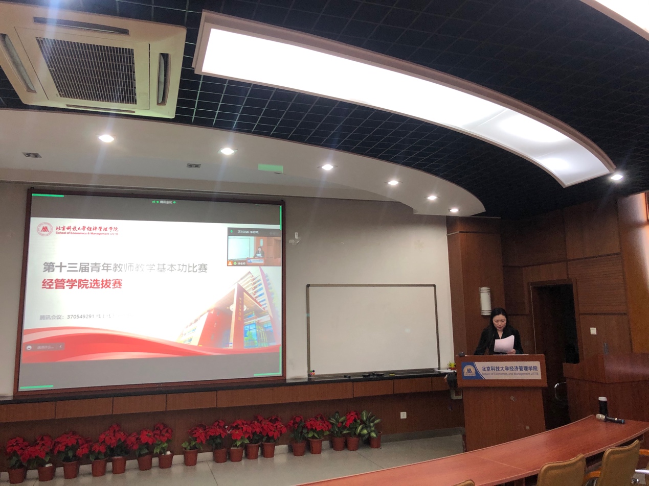 为贯彻落实我校《关于举办beat365英国官方网站第十三届青年教师教学基本功比赛的通知》要求,切实加强我院青年教师队伍建设,搭建青年教师成长平台,引导青年教师钻研教学基本功,进一步提升青年教师的教学能力,2022年12月28日,beat365英国官方网站第十三届青年教师教学基本功比赛在经管楼313室如期举行,比赛分为上、下午两个场次,共有13名青年教师参赛。