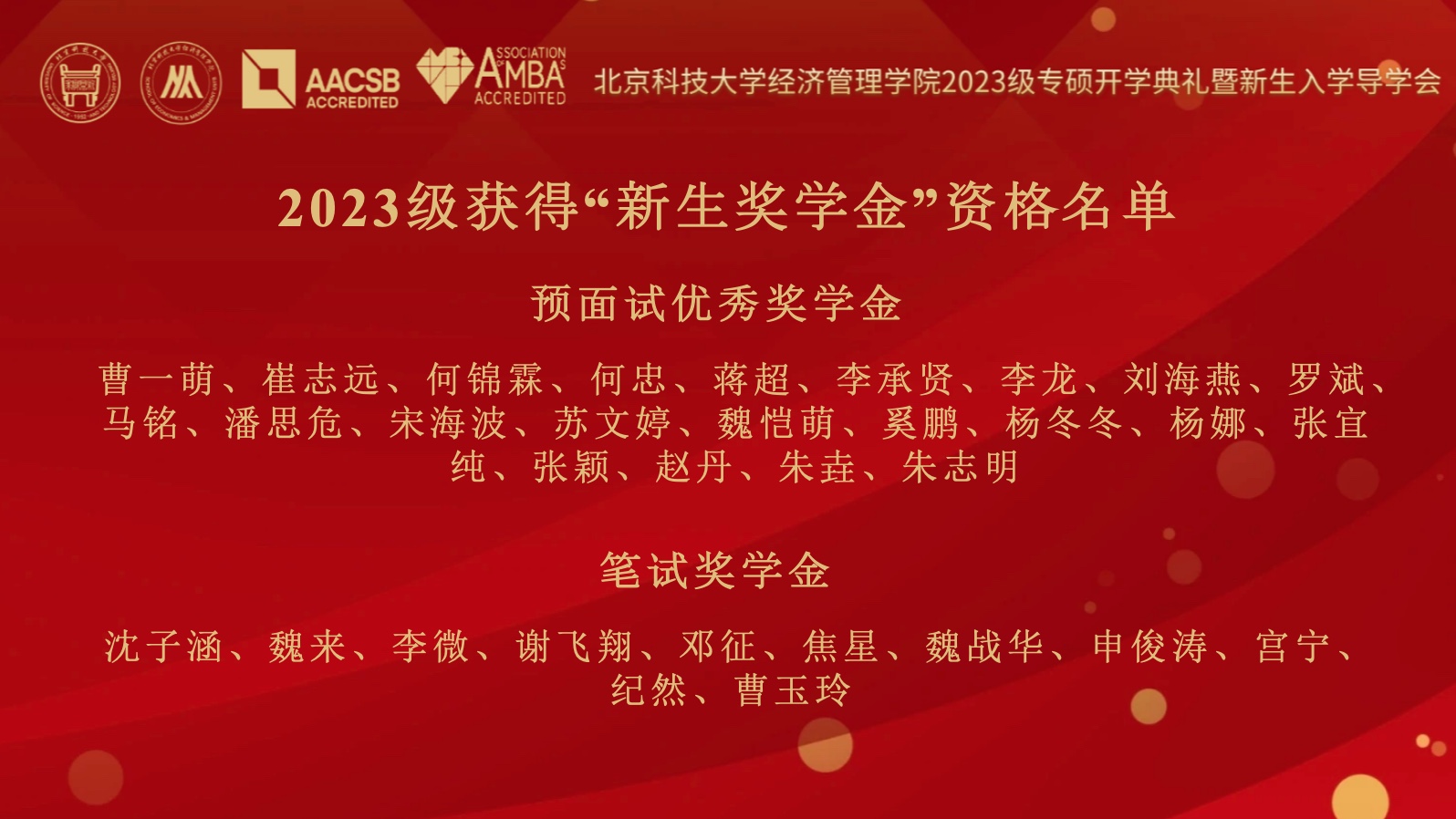 beat365英国官方网站党委书记武森宣读了“2023级新生奖学金”资格名单。千淘万漉虽辛苦,吹进狂沙始到金,共22名学生荣获预面试优秀奖学金、11名学生荣获笔试奖学金。希望同学们奋发图强,积极进取,迎接崭新的未来。