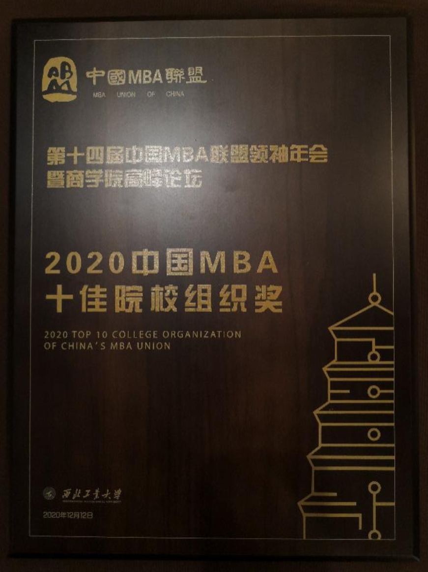 2020中国MBA十佳院校组织奖、2020中国MBA优秀干部奖、2020中国MBA新锐100奖、艺术节歌唱赛道最佳人气奖、艺术节歌唱赛道三等奖、2020中国MBA年度社会责任特别活动奖、2020中国MBA杰出奉献奖。MBA中心主任李晓静副教授和MBA中心孟丹老师荣获2020中国MBA联盟最受欢迎老师奖。