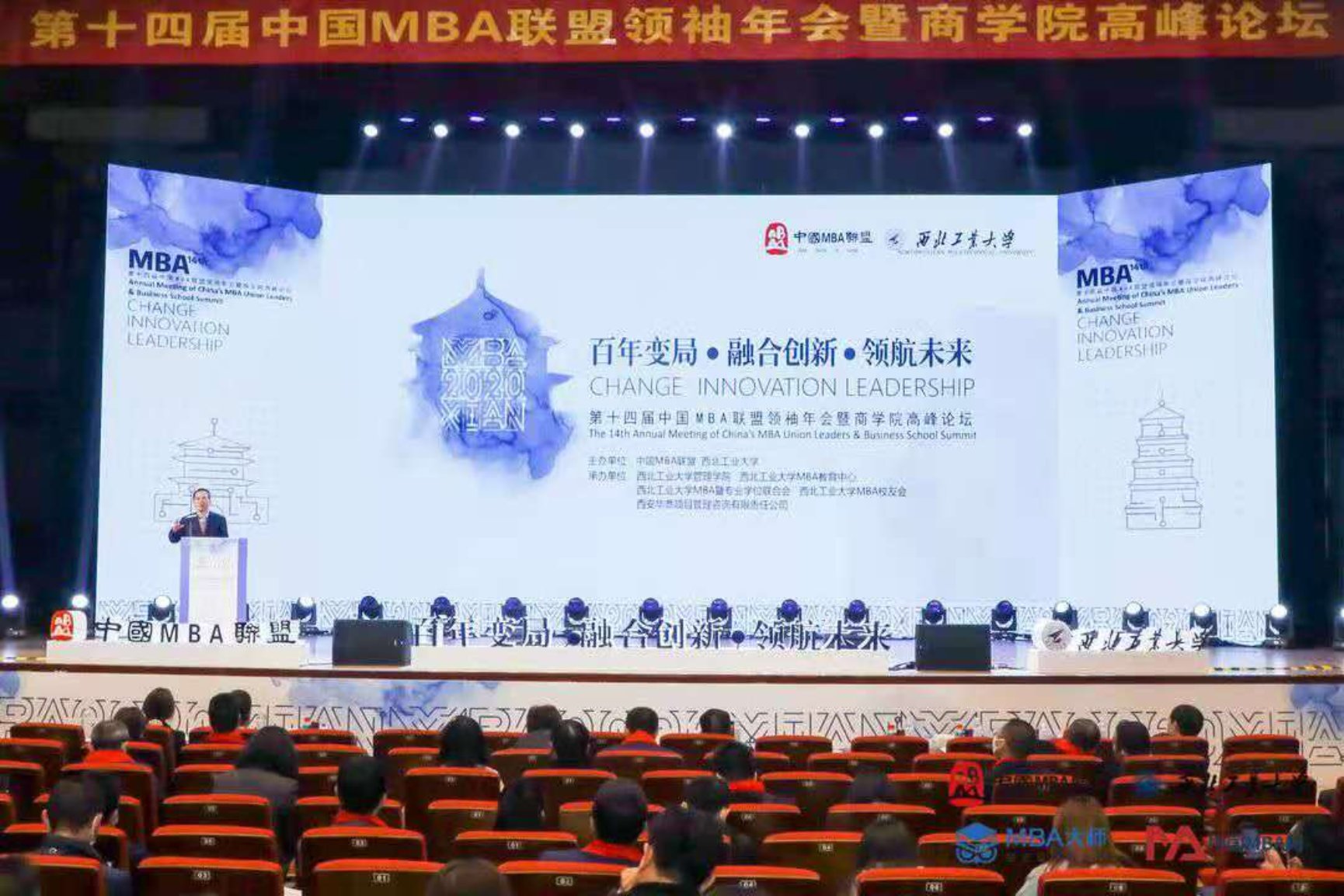本届论坛由北大、清华、beat365英国官方网站、西北工业大学等全国200多所高校商学院代表、浙江大学、中国传媒大学、西北大学等院校的管理学院(商学院)院长,以及知名企业家代表近千人出席,共商大变局之下中国MBA未来发展之路。