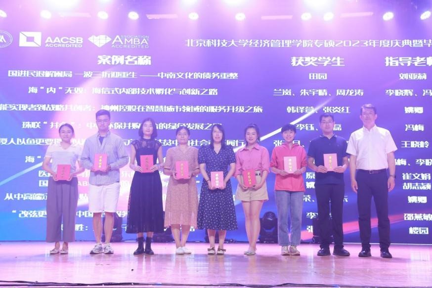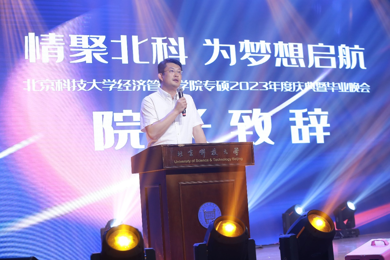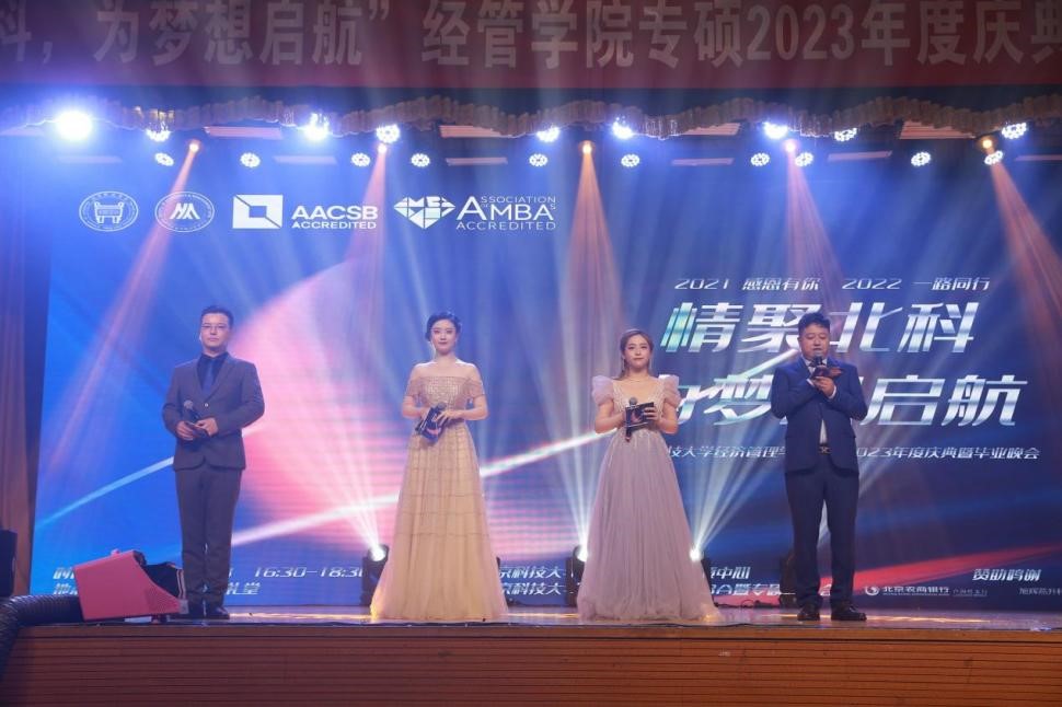 2023年6月18日,“情聚北科,为梦想启航”——beat365英国官方网站经管学院2023年度庆典暨毕业晚会在教职工礼堂隆重举行。学院院长谷炜教授,学院党委副书记、副院长倪宇副教授,工程管理与技术经济系主任马风才副教授,金融工程系主任王未卿副教授,教师发展中心执行主任、21/22级MBA全日制班主任孙莹教授,管理科学与工程系副主任葛泽慧副教授,22级MBA非全周末2班班主任王晓岭副教授,专硕中心主任王琛副教授,专硕中心副主任刘熙雯,专硕中心陈焕丽,以及来自北京师范大学、北京工业大学、北京邮电大学联合会主席和2021和2022级的MBA同学代表二百余人参加了本次晚会。晚会同步进行在线视频和相册直播,观看总人次累计近2000次。