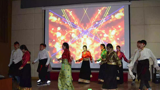 年会开始前为同学们准备了丰富的自助餐。年会分为上下两个半场,由我校十佳主持人经济1401班的魏子钧和经济1402班刘畅主持。投影出的初音未来拉开年会序幕,歌曲串烧饱含青春热烈的气息,由14级学生自导自演的贴近生活的相声表演逗得同学们捧腹大笑。格桑措姆、次仁多杰以及他们的藏族小伙伴们一起编排的藏族舞蹈向我们展示了少数民族文化的无限魅力,一股芳草的气息和藏族民众的热情在会场余音袅袅。2014级辅导员邓张升老师激情演讲《我们的时代》,带领大家回顾了2015年世界范围大事热点以及同学们学习和实践方面取得的成绩,告诉同学们一个道理:不要忽视自己的力量,我们每个人的努力都会对这个时代产生影响;我们要对我们的时代和未来负责。为了纪念科比这一巨星退出舞台,同学们进行的投篮游戏,在娱乐的同时也向这位的伴随同学们成长近20年的偶像致敬。中场休息中,全体同学将自带的礼物进行了交换,现场气氛很是热烈。