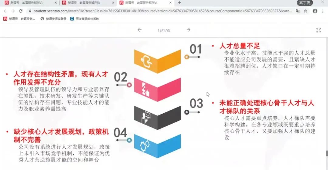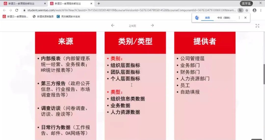 2022年4月21日,beat365英国官方网站工商管理系“人力资源大数据实践项目”第七次授课如期开始。按照疫情防控期间相关要求,本次授课依旧使用腾讯会议的方式进行,新道科技股份有限公司高级讲师高宇嵩老师进行讲解。高老师主要从三个方面对人才盘点的数据处理进行讲解与演示,首先是业务理解方面的回顾和补充讲解,带领同学们简单回顾上节课讲解的人才盘点业务理解,并对人才盘点发现的问题进行分析举例,加深同学们对人才盘点的理解与认知。在业务理解这一方面,高老师还为同学们提供了确定人才盘点项目分析目标的具体思路,从描述问题、分析问题、分析执行以及目标归类四个角度对人才盘点项目分析目标的确定思路进行详细讲解,并举以实例帮助同学们理解。通过对一份人才盘点的项目分析目标报告的讲解与分析来帮助同学们了解人才盘点项目分析目标的确定。
