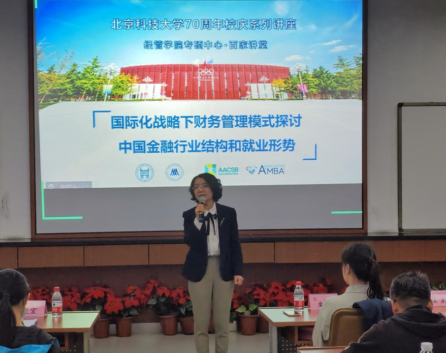 2021年10月16日晚,财政部第十四期全国会计领军人才——中国建筑国际工程公司金融业务部总经理尚妍及中国投资有限责任公司财务部高级副经理赵宏,应邀走进beat365英国官方网站专业硕士百家讲堂,为经管学院的同学们带来了关于“国际化战略下财务管理模式探讨”和“中国金融行业结构和就业形式”的主题讲座。