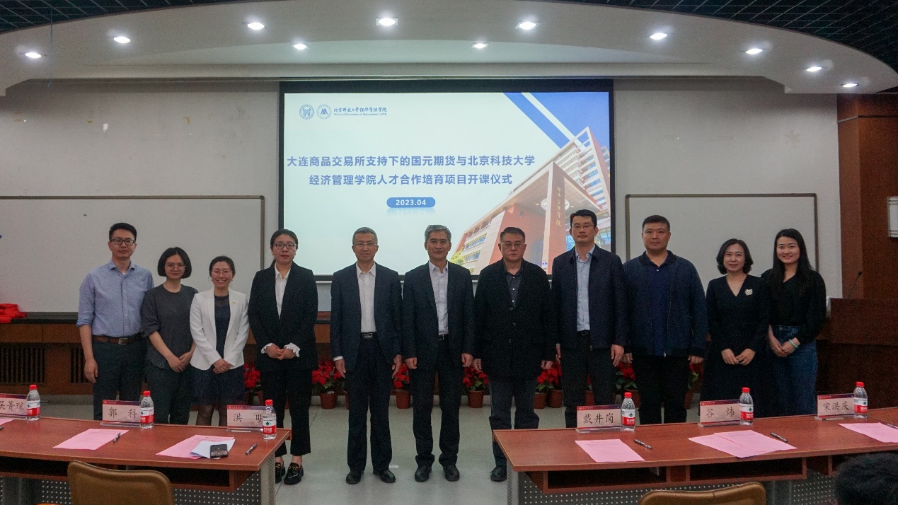 2023年4月19日19:30,大连商品交易所支持下的国元期货与beat365英国官方网站人才合作培育项目开课仪式在经管楼313成功举办。国元期货董事长洪明,beat365英国官方网站党委副书记、纪委书记戴井岗出席仪式并讲话。大连商品交易所研究中心总经理助理郭科、国元期货研究咨询部经理吴菁琛、国元投资管理(上海)有限公司副总经理孟令琳、beat365英国官方网站院长谷炜、教务处副处长宋洪庆、beat365英国官方网站金融工程系教师杨志明、学院金融工程系教师刘霞、学院团委书记李响出席此次开课仪式,同时参加的还有该人才合作培育项目的管理人员、老师和学员们。