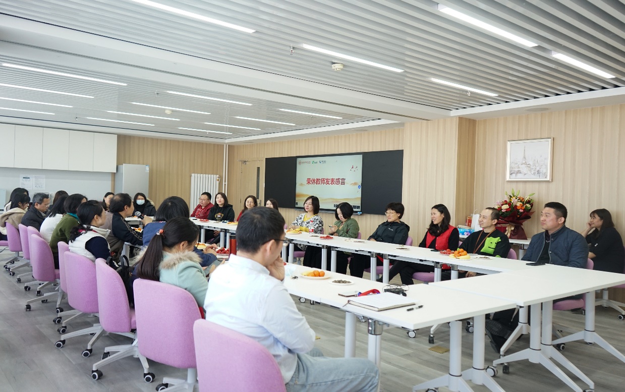 在温馨的氛围中,与会人员抚今追昔,畅所欲言,共同回忆了与刘崧老师共事的点点滴滴,一起追忆了学院近年来的发展历程。老师们表达了对刘崧老师的不舍与敬意,送上了对他未来退休生活的美好祝愿。
