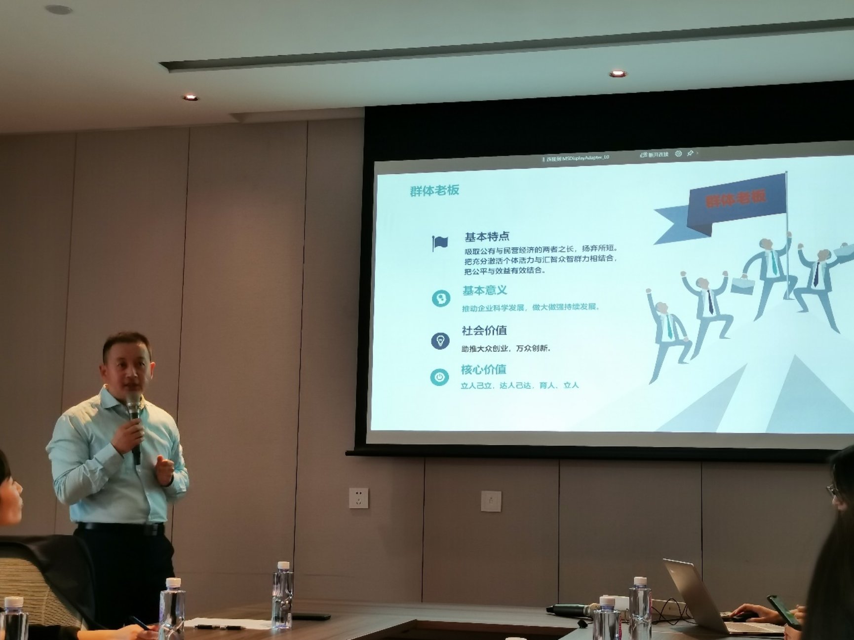 群体老板制吸取了公有与民营经济的两者之长,把公平和效益有效地结合起来。邓总提到,群体老板制把陈春花教授讲的客户价值以及稻盛和夫先生重视的员工价值很有机地结合在了一起,充分发挥了客户价值和员工价值的效益。