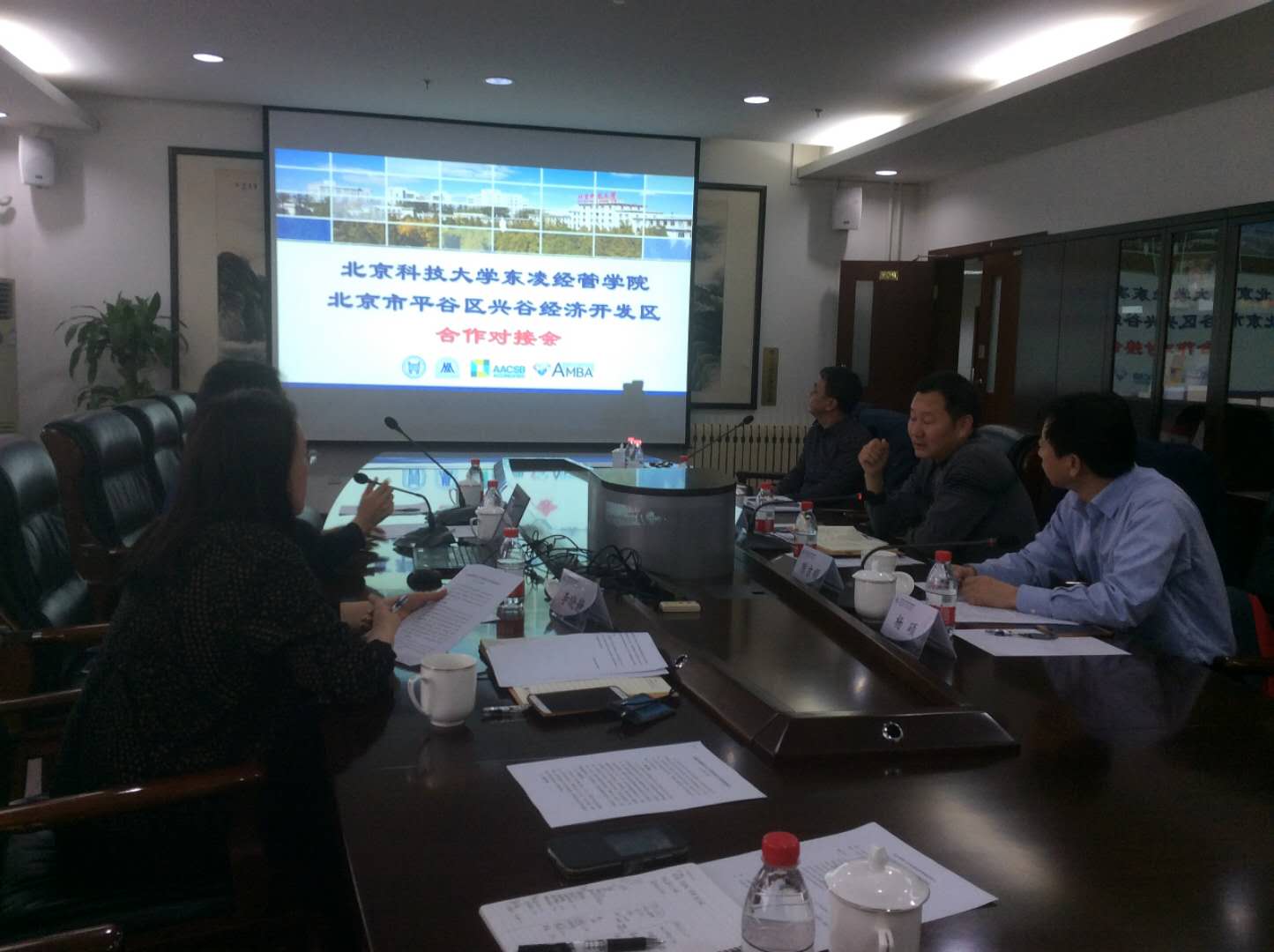 beat365英国官方网站东凌beat365英国官方网站与北京市平谷区兴谷经济开发区合作对接会于2018年12月20日下午2点在经管楼809成功举行。经管学院院长闫相斌、副院长范小华、学院MBA中心主任李晓静,兴谷经济开发区管委会主任、党委副书记付强,党委副书记陈吉顺、副主任张术明、招商科长张立军等参加了合作对接会。