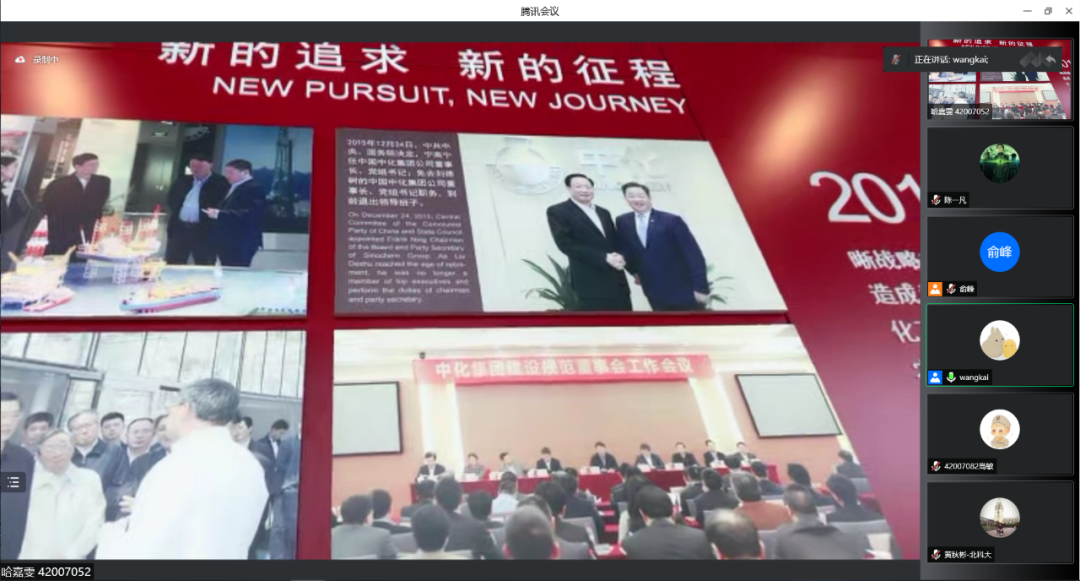 在认识实习的第三环节,线上参与的同学们踊跃就国贸专业的职业路径选择及发展方向进行了提问。郭总经理耐心地为同学们指出,在以国内大循环为主体、国内国际双循环相互促进的新发展格局下,中国中化作为全球布局、国际化运营的中央企业,需要大批能够活跃在开放经济前沿的复合型国际化人才,这与国贸专业的人才培养目标完全一致。希望同学们能够保持开放的心态与宽阔的视野,真正做到学以致用,不断提升个人核心竞争力,以自身过硬的专业技能和见解为企业和社会赋能。