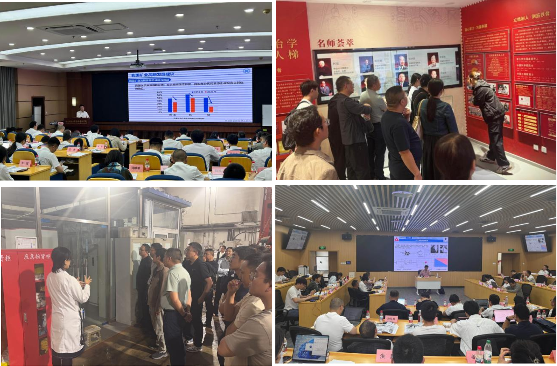 本次培训结合中国铜业有限公司中层干部和青年骨干人才的培训需求,紧密围绕全球矿业发展趋势与技术能力提升展开,涵盖了“全球矿业科技发展趋势与战略布局”、“矿企绿色发展战略”、“智能矿山、工厂建设”、“深部与极端环境矿产资源绿色高效开采技术”、“人工智能”、“战略性矿产资源采选冶技术应用”等前沿专题。同时融入了“中央八项规定精神专题学习”、分组研讨技术难题以及参观校史馆和重点实验室的现场教学环节。