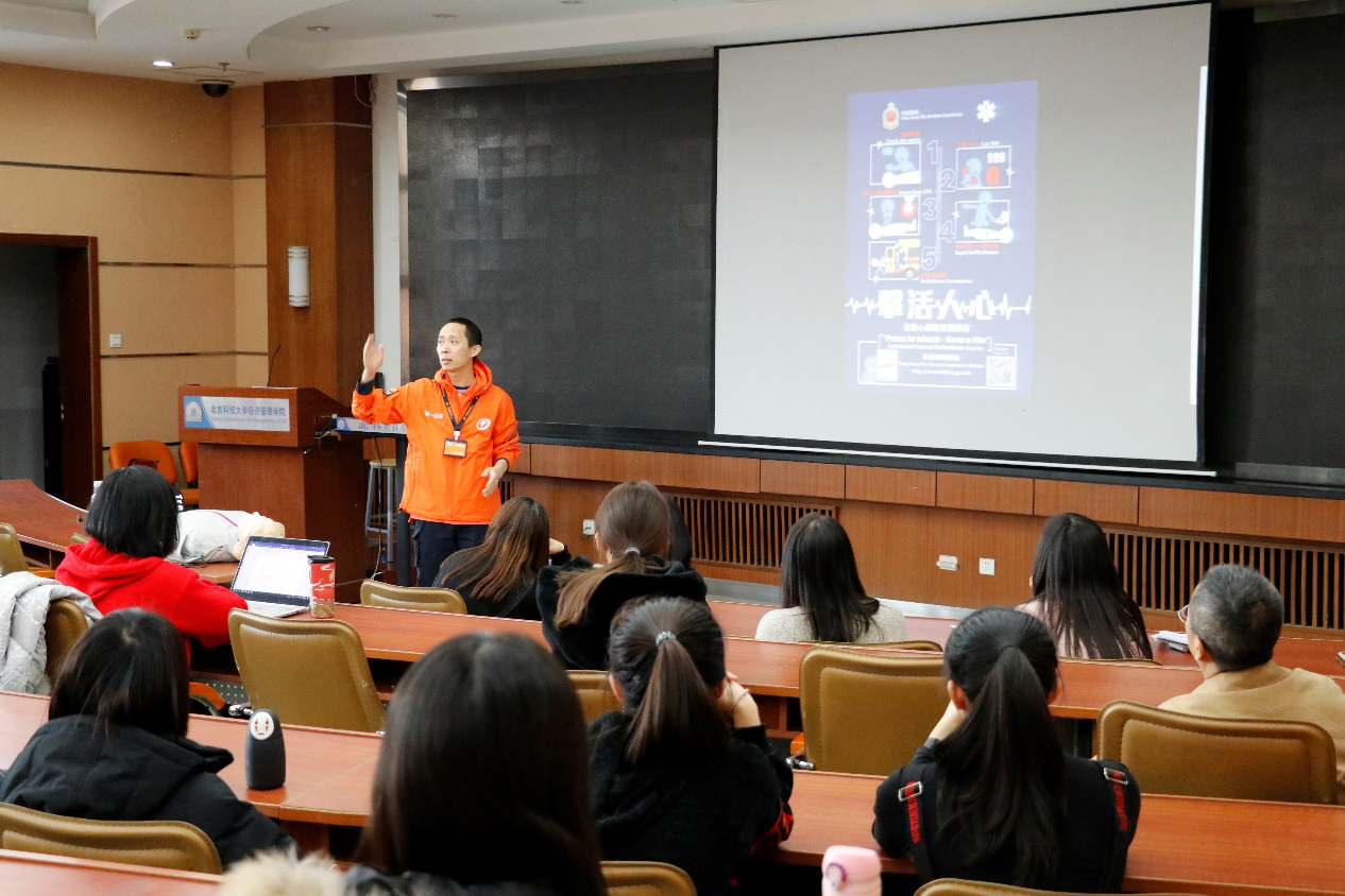 为提高学院师生员工的急救意识与现场急救能力,掌握心脏自动体外除颤仪(AED)使用方法,2019年12月12日下午,东凌beat365英国官方网站在经管楼405室开展了急救知识技能培训。学院全体党政管理人员、各系所工会小组长、教师代表及各班级生活委员累计近100人,共同参加了此次急救知识技能培训。