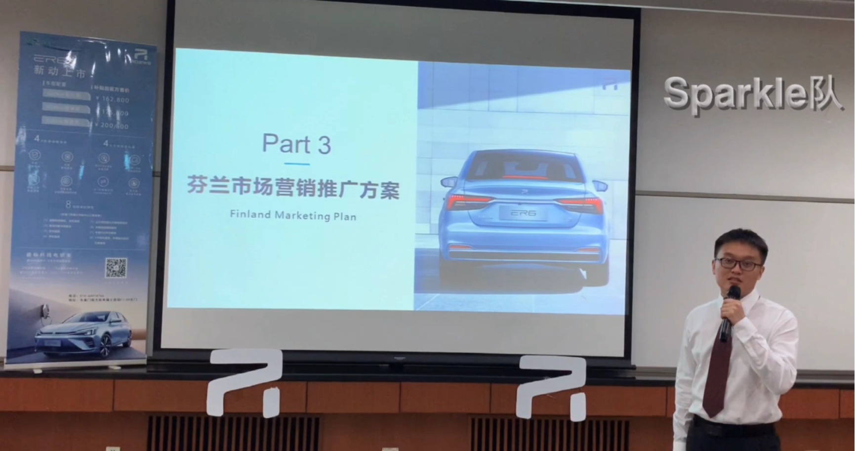 学院MBA中心也给予了参赛队伍极大的支持,在疫情期间特地向学校申请了一间教室供参赛学子使用。“Sparkle”团队在胡玲老师的指导下,将课堂所学与实际情况相结合,处变不惊,沉着应对挑战。在经过数天的熬夜奋战,制定了一套极具创意的可落地的解决方案,甚至还为案例对象荣威ER6制作出了一款小游戏,最终在商业视频演示环节收获了评委和观众的认可和赞扬。