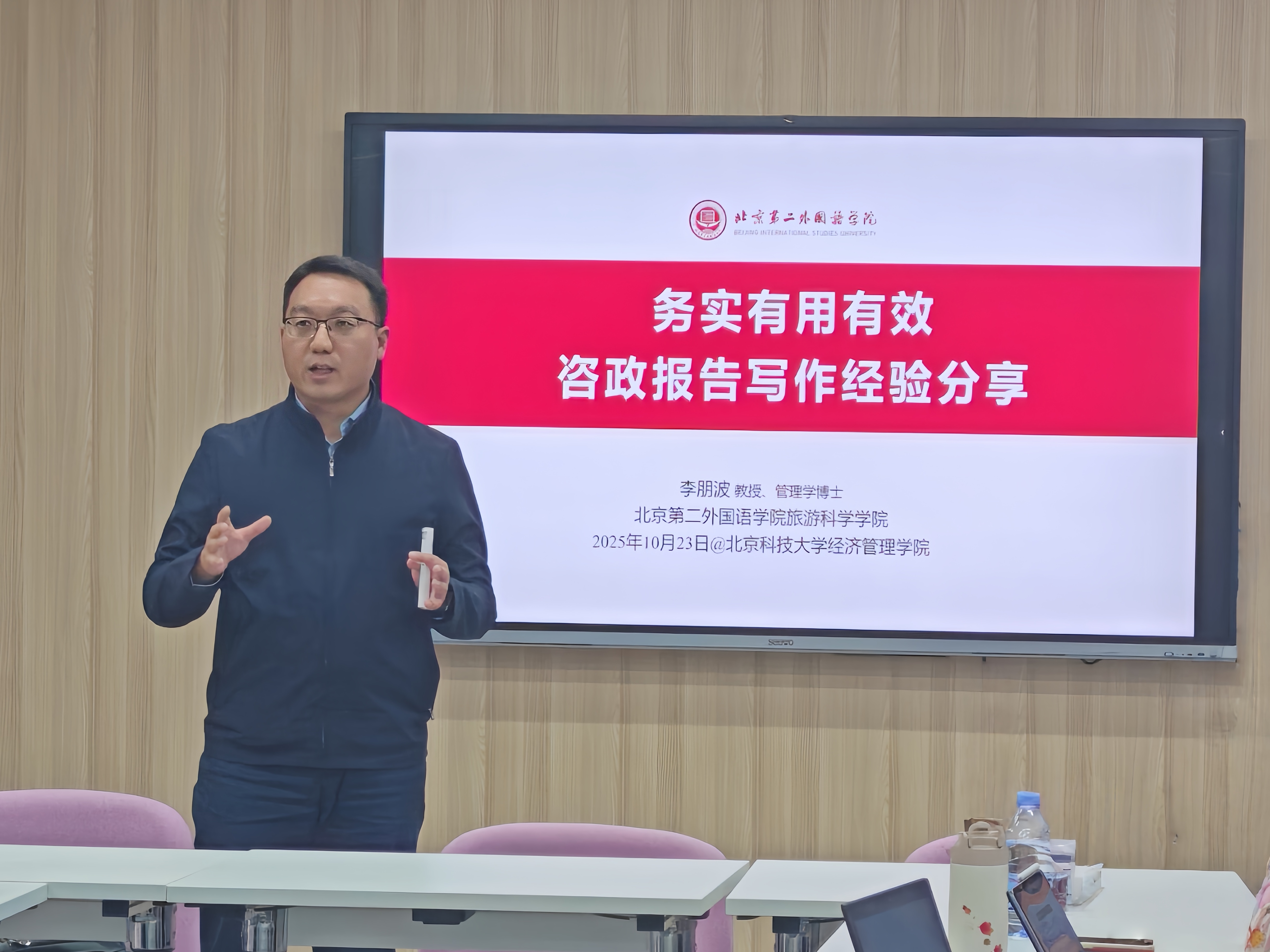专家介绍:李朋波,北京第二外国语大学旅游科学学院党委书记,教授、管理学博士。入选北京市“四个一批”青年英才(理论界别),获评北京市高校青年教学名师、北京市属高校优秀青年人才、北京市优秀本科课程主讲教师。教育部首批黄大年式教学团队主要成员,北京市习近平新时代中国特色社会主义思想研究中心特约研究员,朝阳区“十五五”规划专家咨询委员会顾问。研究方向包括旅游企业管理、人力资源管理、文旅融合发展等。主持国家自然科学基金、教育部人文社科基金、北京市社科基金等各级课题10余项,承担国家自科基金重点项目子课题1项。发表学术论文60余篇,出版著作4部,完成咨政报告20篇,多篇成果获有关部门采纳或批示。