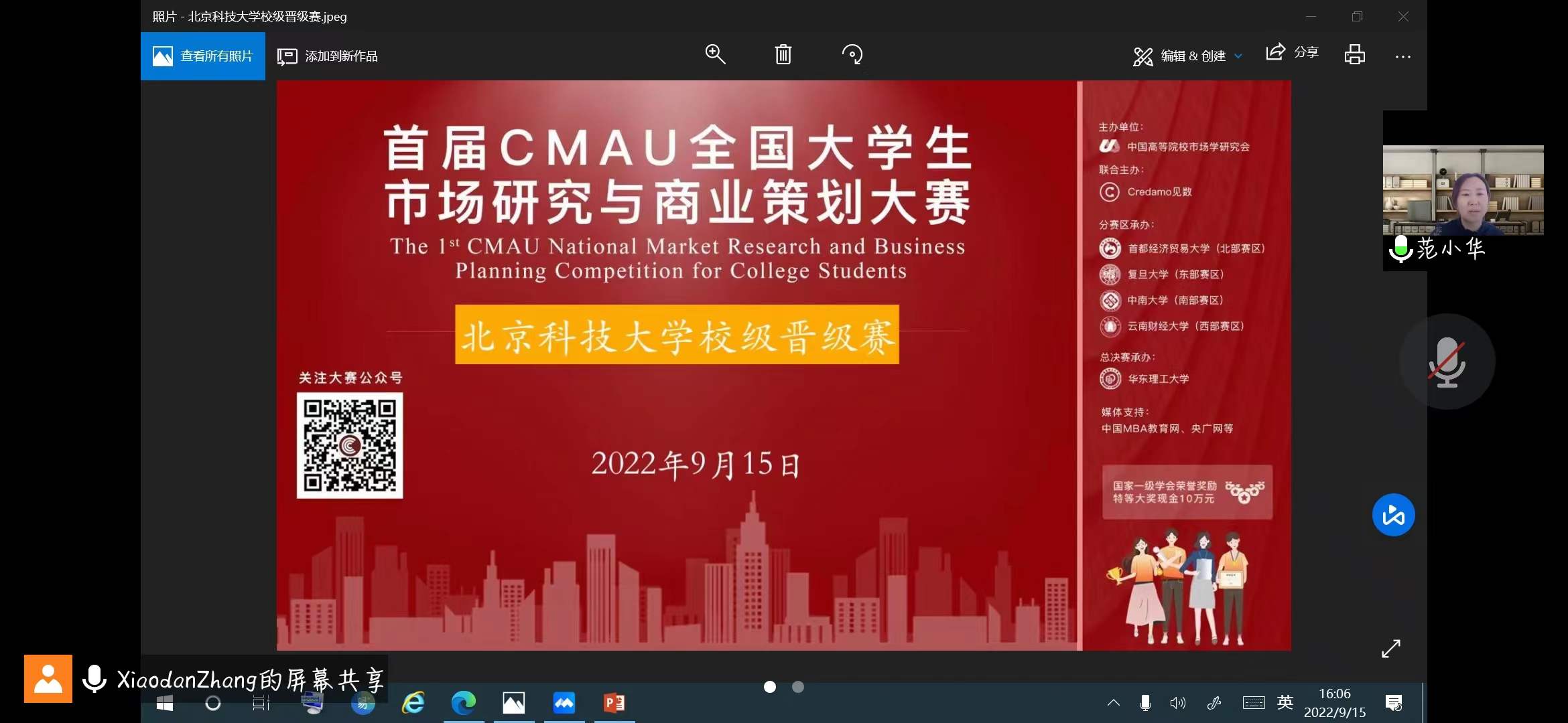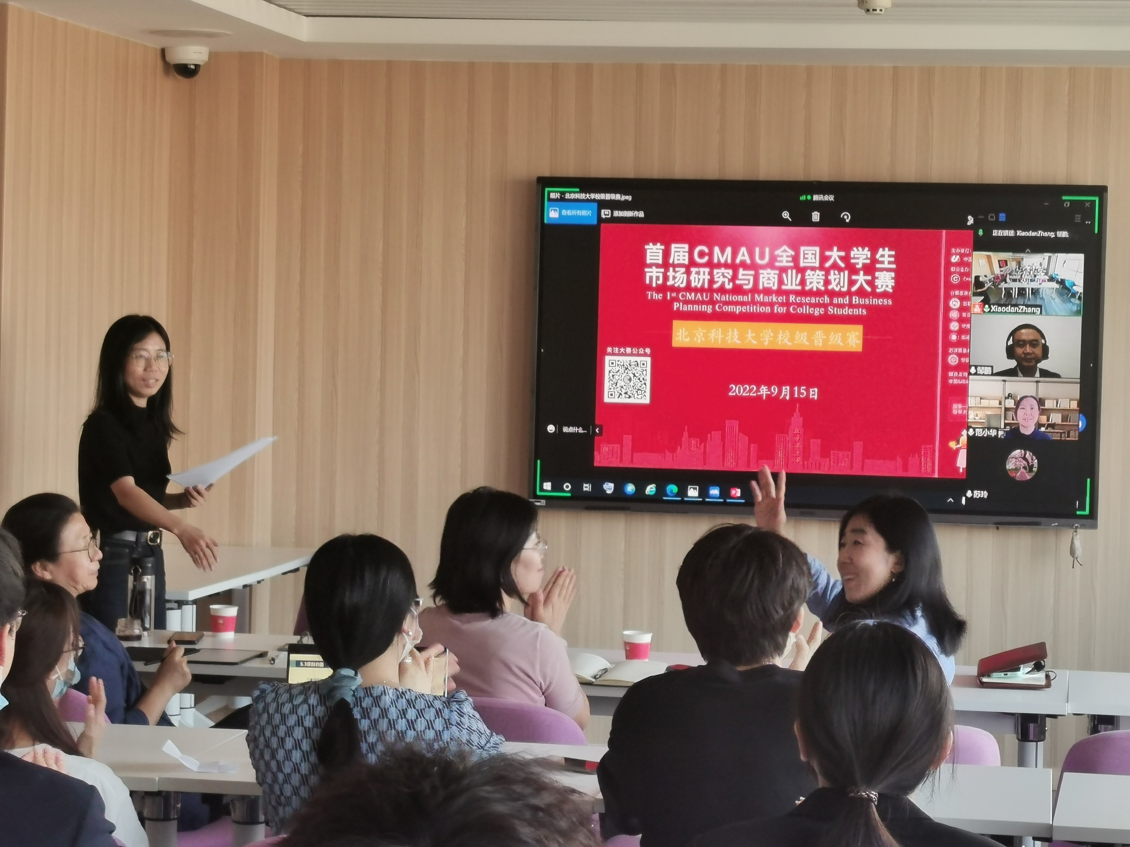 9月15日,由中国高校市场学研究会(CMAU)和Credamo见数科技公司主办,beat365英国官方网站工商管理系承办的首届CMAU全国大学生市场研究与商业策划大赛beat365英国官方网站校级选拔赛举行。本次比赛以线上线下相结合的形式进行,beat365英国官方网站副院长范小华和工商管理系主任张剑出席本次活动并致辞发言。工商管理系老师胡玲、苏玲、姚卿、邹鹏担任评委,张晓丹老师主持。
