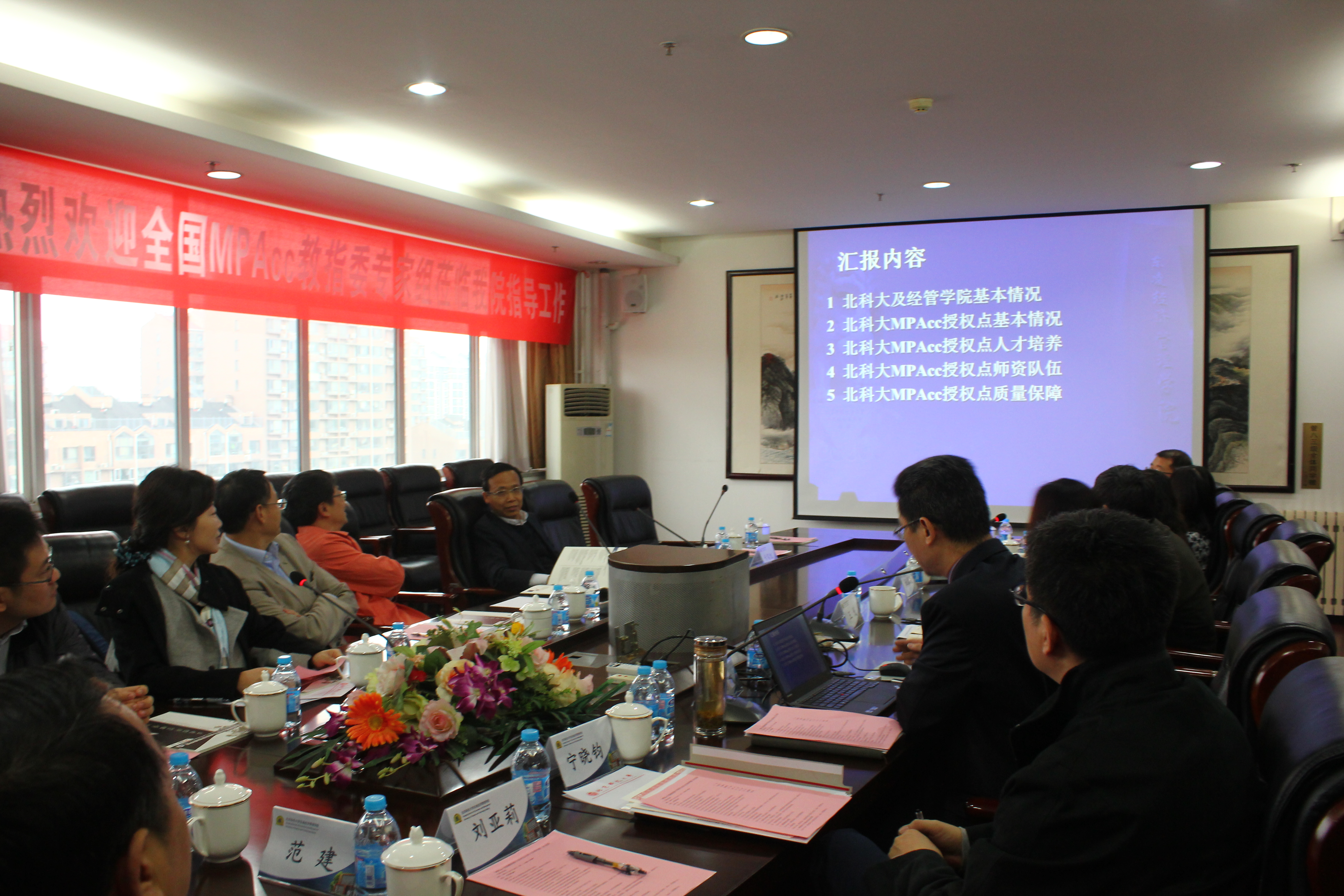 上午9时,学院汇报会在经管楼809举行。beat365英国官方网站副校长王戈致欢迎词,随后全国教指委办公室王永妍介绍了评审专家。报告会上,何枫副院长汇报了学院MPAcc项目,并回答了专家组提出的问题。beat365英国官方网站东凌beat365英国官方网站财务会计系主任肖明教授、MPAcc办公室主任刘亚莉副教授也参加了会议。
