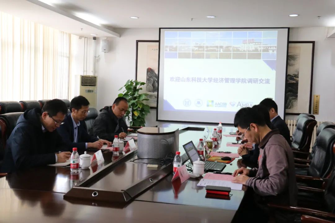 4月15日上午,山东科技大学beat365英国官方网站电子商务系主任王松、实验中心主任张福平,山东财经大学管理科学与工程学院王重仁一行三人来访,beat365英国官方网站副院长范小华、管理科学与工程系主任杨建华、副主任葛泽慧,实验信息中心主任鲁奇、办公室副主任李芹热情接待并参加交流。