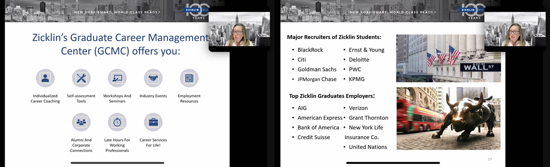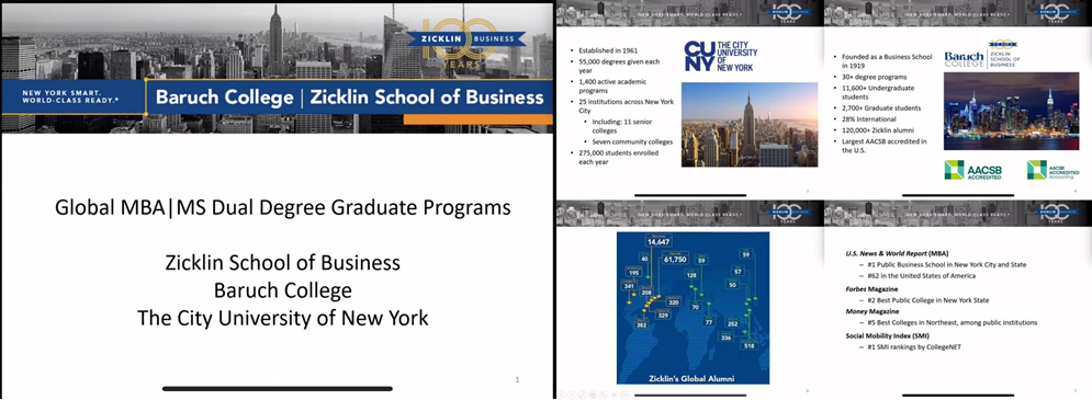 2022年12月14日晚,beat365英国官方网站与纽约市立大学巴鲁克分校杰克林商学院合办的硕士双学位项目线上宣讲会顺利举办。宣讲会邀请杰克林商学院研究生项目执行主任HelaineKorn教授和国际项目专员Rong Yan老师进行项目介绍,学院国际合作与交流办公室主任赵霞以及来自学硕和MBA项目的三十余名学生参与了此次宣讲。