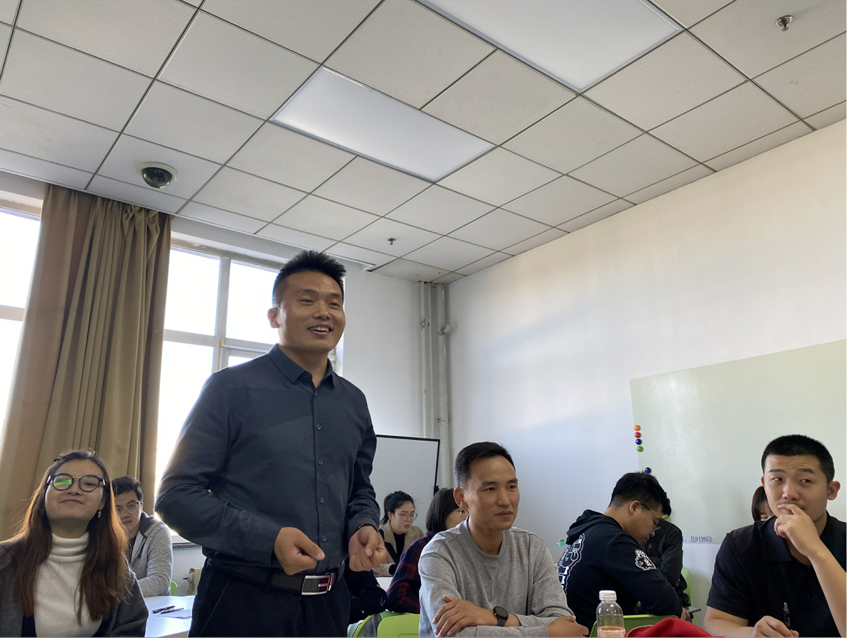 曹部长详细介绍了部门的主要的工作内容以及一年以来与老师和其他部门合作进行高效工作的经历。