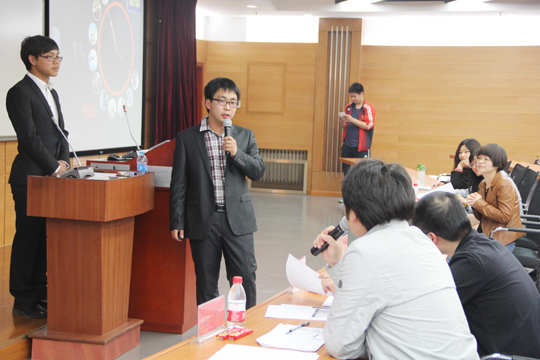 17组参赛选手的激情宣讲,评委们简明扼要但一针见血的发问,台下其他参赛选手全神贯注的聆听……场内气氛一直活跃非常,稳中有序。有的选手些微腼腆,语言并不连贯,但是提到自己队伍策划和成果时的激动同样让人感同身受;有的选手平铺直述,于沉静的姿态中自现强大的逻辑和低调的自信;有的选手慷慨激昂,口若悬河,以自身澎湃的豪情让评委们赞叹不已,频频点头。不得不说营销大赛是一个优秀的平台,来自不同学院不同专业甚至不同年级的选手们在这个平台上展示自我,提升能力,以寻得自身更好的发展。