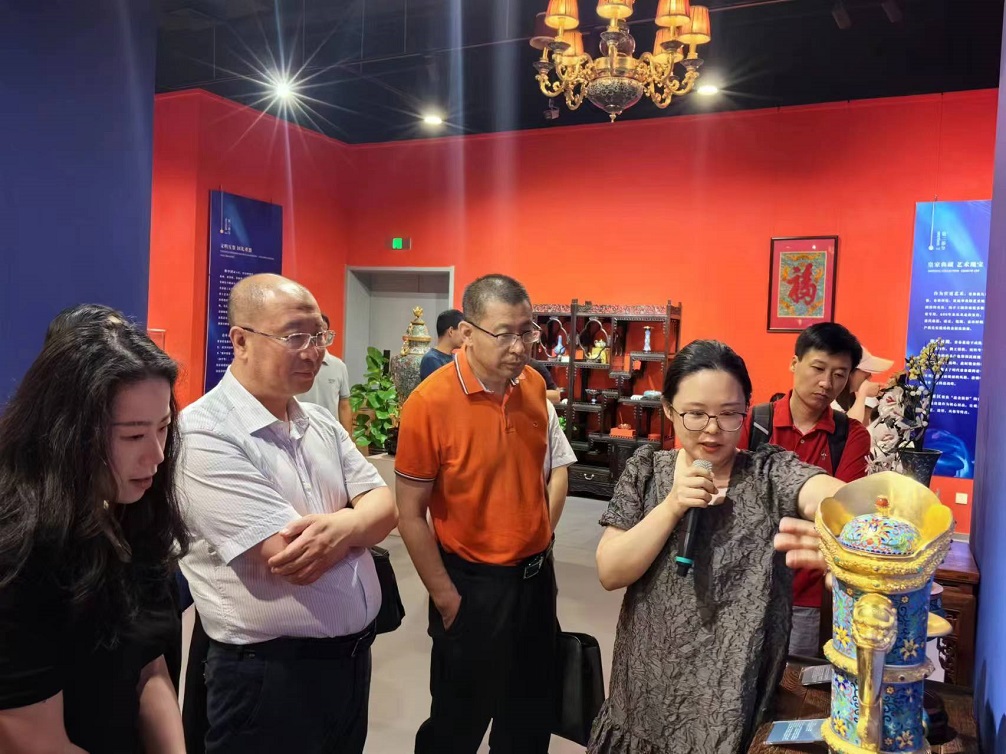 上午,我院师生一行首先参观了位于产业园内的和·艺术馆。和·艺术馆是由和众集团全资创办的民办非营利性艺术馆,以多个弘扬中国传统文化的展览确立自己的艺术定位。在近万平米的展厅藏品众多,艺术馆讲解员为我院师生详细介绍了中国传统漆器、景泰蓝瓷器、中西方绘画在内的多种展品,其专业而精彩的讲解引来师生们的连连鼓掌。恰逢中国共产党成立103周年,艺术馆内特别展出了相关美术作品,同学们在一幅红军长征过草地的主题油画前驻足良久,回想起魏老师在课堂上提到的企业文化理论,更加深刻的领悟到中国共产党的“长征精神”对我们整个国家和社会的强大的激励作用。随后相关领导与我校师生共同合影留念,和·艺术馆之行圆满结束。