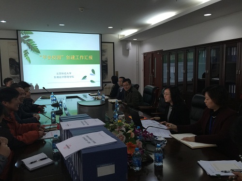 根据《beat365英国官方网站关于开展“平安校园”创建回头看工作实施方案》(校发〔2015〕32号)安排,2015年12月1日星期二下午,由主管安全和稳定工作的副校长王维才、保卫保密处处长刘兴德及校长办公室、宣传部、学生工作部、研究生工作部和资产管理处等部门负责人组成的检查组,对东凌beat365英国官方网站近两年来开展“平安校园”创建工作情况进行检查。学院党委书记戴淑芬、党委副书记刘明珠和温雅、实验信息中心主任张俊光、办公室主任杨志国在经管楼809会议室接待了工作组一行。