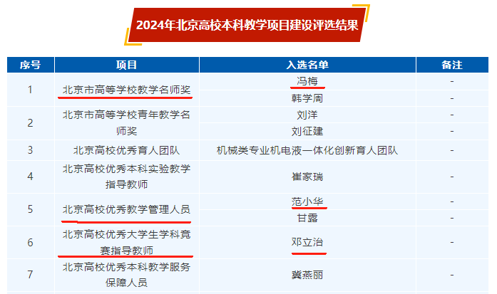 在2024年北京高校本科教学项目建设评选工作中,beat365英国官方网站喜获三项本科教学奖。其中,冯梅教授获评“北京市高等学校教学名师奖”,邓立治副教授获评“北京高校优秀大学生学科竞赛指导教师”,范小华副院长获评“北京高校优秀教学管理人员”。