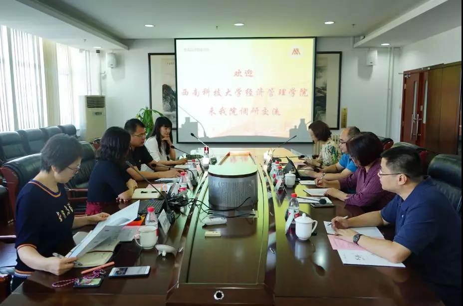 2019年9月26日,西南科技大学beat365英国官方网站院长、MBA教育中心主任张华教授携院长助理、MBA教育中心执行主任张霜教授、案例中心主任何波副教授,以及讲师张宏亮博士莅临beat365英国官方网站东凌beat365英国官方网站,与我院召开调研交流会。